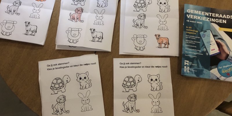 De kinderen konden op 18 maart ook stemmen, op hun lievelingsdier. Dat hebben 19 kinderen gedaan. De poes en het hondje hebben beide 6 stemmen gekregen, de koe 3, het schaap 2, het konijn 1 en er was 1 blanco stem.